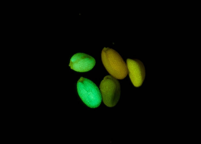 上圖為帶有綠色熒光蛋白的種子。