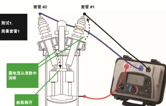 以下的四张插图显示了测试绝缘套管以及户外断路器相关部件的常用方法。