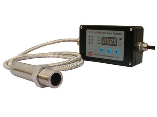 FIR系列光纖紅外測溫儀的測溫范圍為300℃~3000℃(分段實現(xiàn)),固定焦距的精密光學(xué)探頭包括不銹鋼圓柱形外殼和透鏡,其可承受的環(huán)境溫度高達(dá)200℃,光學(xué)探頭可安裝空氣吹掃器以防止透鏡被污染。柔性光纜由不銹鋼金屬套所保護(hù),可使光纜較小的半徑彎曲以便其穿過狹小的空間,對無法直接觀察的目標(biāo)(容器或管道內(nèi)壁處)進(jìn)行溫度測量