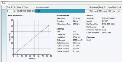 加载速率曲线和测试结果一起保存,它可以下载到 PC 生成报告;或在测试期间,如果 DY-2 连接 PC,也可以对其进行实时观察。