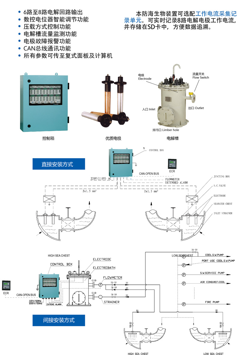 - Product description: 使用SLT-01铜铝电极式防海生物装置可有效防止舰船、石油开采平台等海水管系中海生物的生长。订货时请注明海水处理量及要求电极使用寿命。
