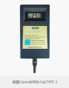 Clavis Type 3 Optical Belt Meter(Type 3光学测量仪)能够测量从7Hz到300Hz的皮带张力频率,并配有光学头,该光学头经过优化,可在低频下获得佳性能。该皮带表由一个简单的开/关键盘按钮操作。