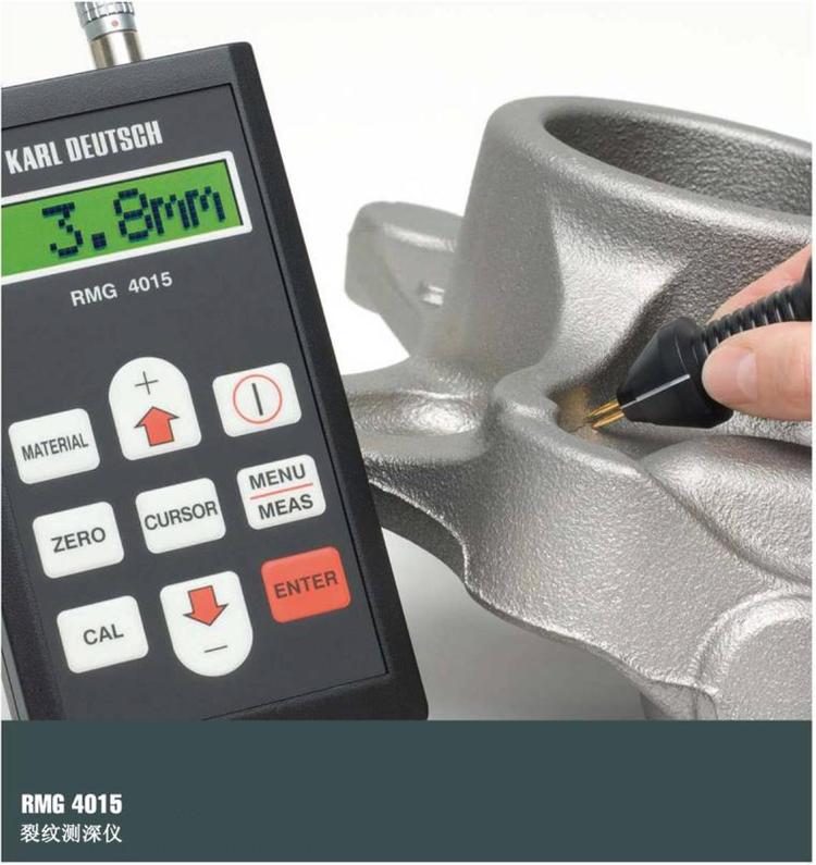 新型的裂纹测深仪RMG 4015可测量铁质材料、奥氏体钢工件,同时可用于铜、黄铜、铝和其它非铁质材料